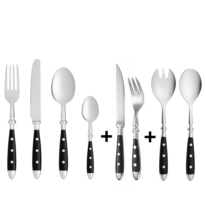 ¿Estás buscando una opción elegante y completa para tus comidas? El Pack Juego Cuchillería 12 Personas + Set Ensalada + Juego Cuchillería 12 Personas Carne Forjen Viveur es la elección perfecta para ti. Ideal para cenas familiares, eventos especiales o como regalo único, este set de alta calidad ofrece todo lo que necesitas para disfrutar de una experiencia gastronómica de lujo.