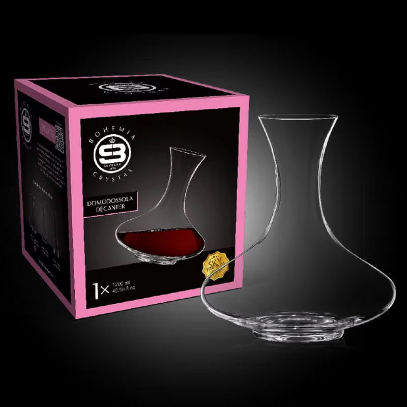 Descubre una nueva forma de disfrutar el vino con el Decantador de Vino Domodesolla de Bohemia. Su silueta amplia y elegante no solo aporta sofisticación a la mesa, sino que cumple una función clave: oxigenar el vino para liberar aromas, suavizar taninos y potenciar todo su carácter.