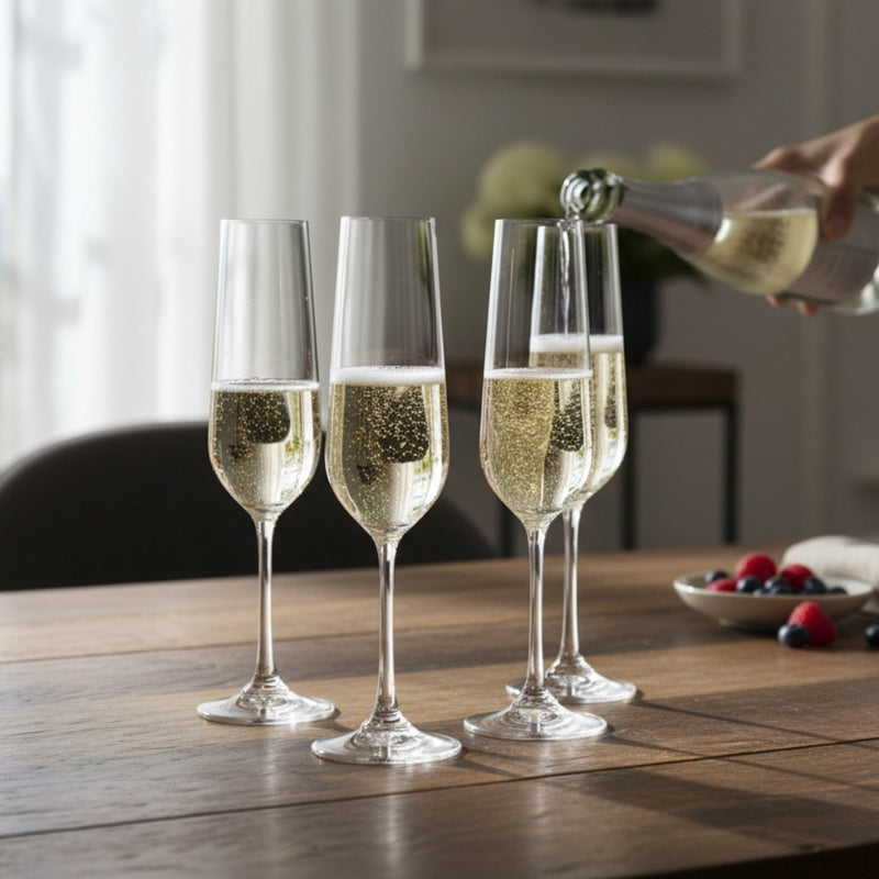 El Set de 4 Copas Champagne SIENA de Bohemia esta fabricadas con cristal resistente y de alta transparencia. Su forma ligeramente geométrica ofrece un agarre cómodo y permite que los aromas se desarrollen con gran belleza. La combinación de diseño moderno y funcionalidad pensada hace de esta serie una excelente opción tanto para el uso diario como para servir con estilo en ambientes de alta gama.