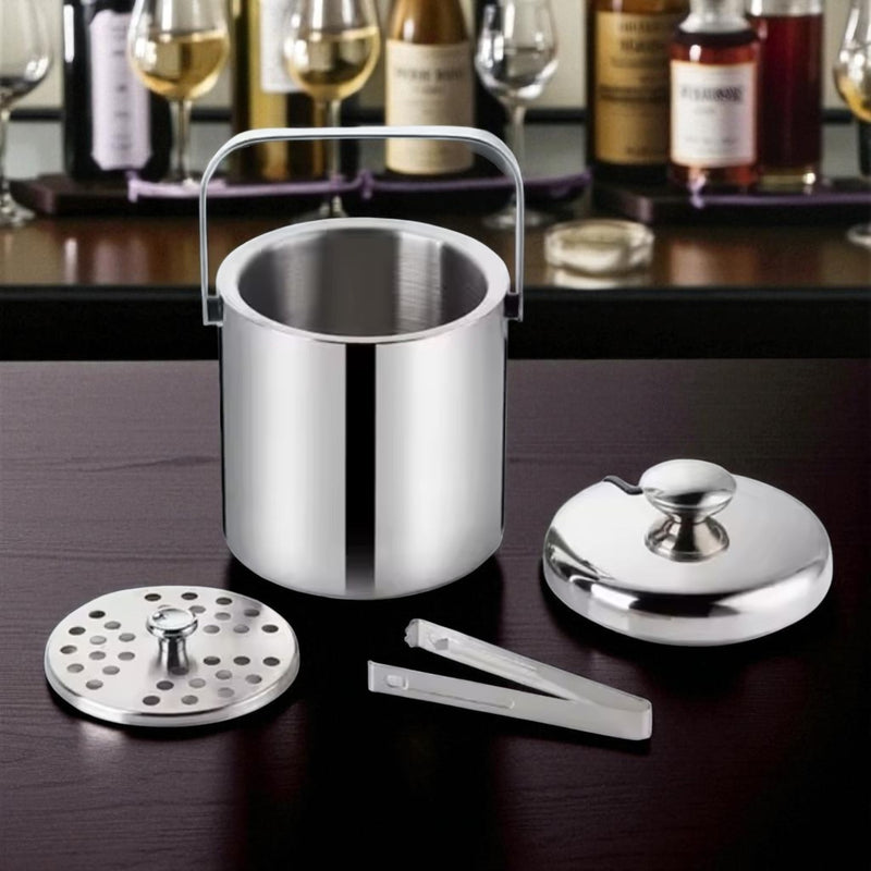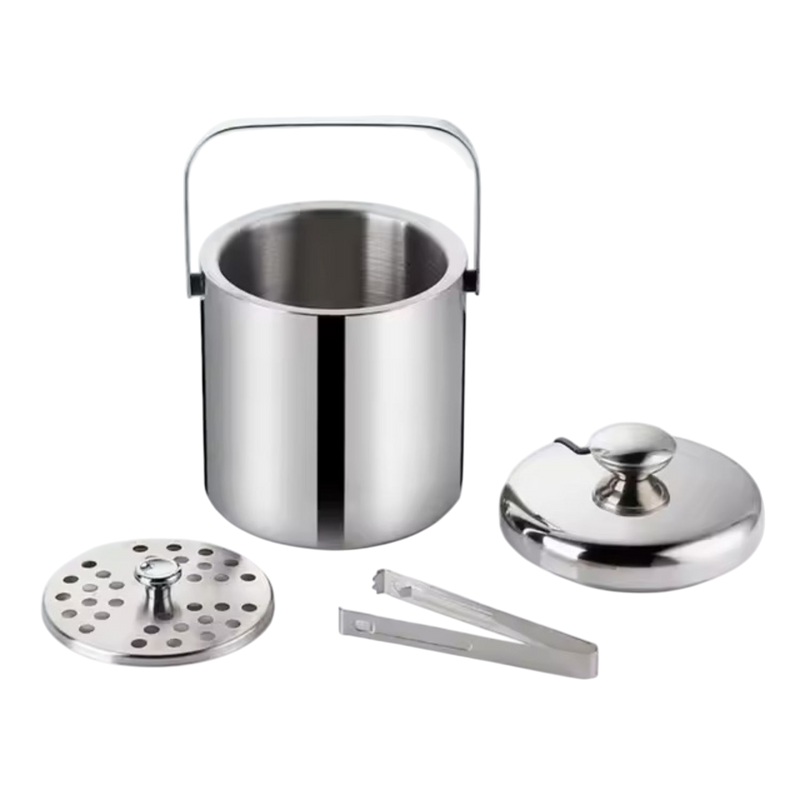 Su doble pared aislante conserva el hielo por más tiempo, evitando la condensación exterior. Incluye tapa hermética, pinzas integradas y asa metálica para transportarla fácilmente.