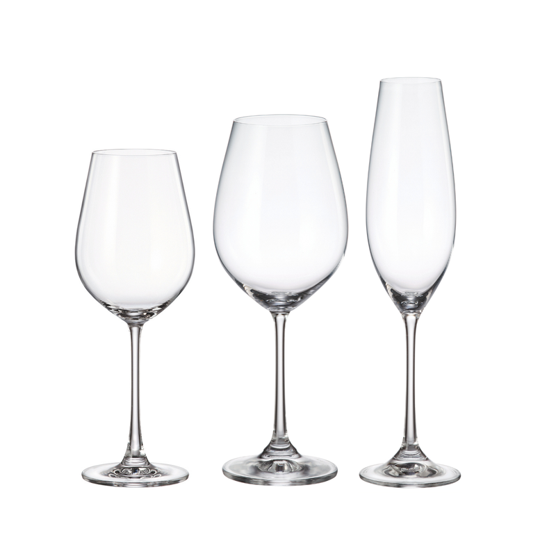 El Juego de Copas COMO de Bohemia reúne en un solo set todo lo necesario para disfrutar el vino y el champagne como se debe, con diseño europeo, equilibrio y sofisticación.