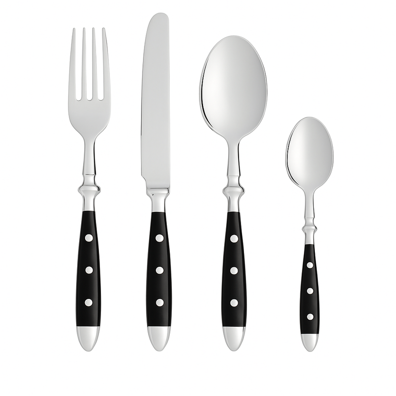 Fabricado en acero inoxidable de alta calidad, resistente al uso diario. Mangos con diseño forjado y remaches visibles, que aportan un estilo rústico y elegante. Cuchillos robustos y firmes para cortes precisos. Perfecto equilibrio entre modernidad y tradición, ideal para cualquier tipo de mesa.